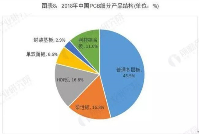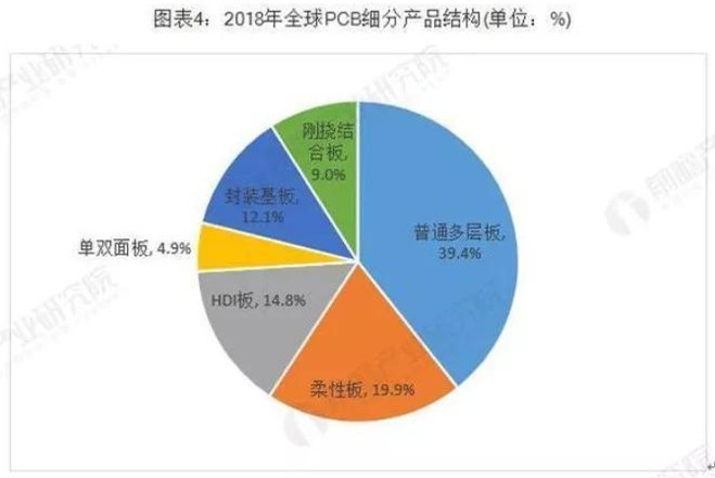 根据Prismark的统计,2018年全球PCB细分产品的市场结构如下: